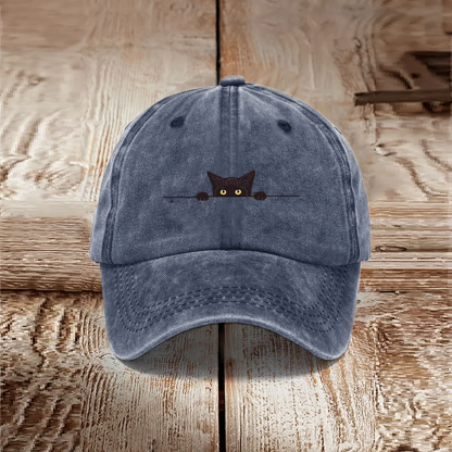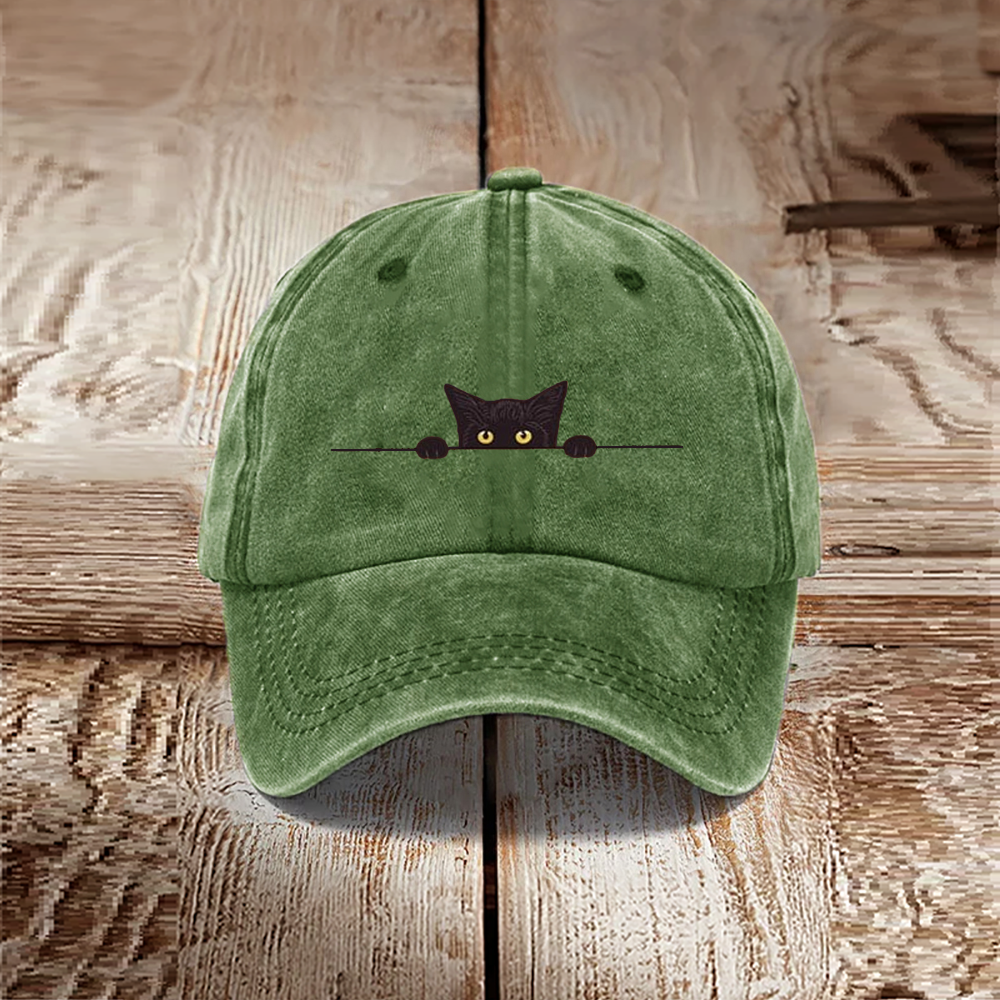 Japanese Art Black Cat Print Washed Hat