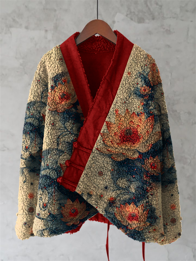 Japanese Style Lotus Embroidery Inspired Design Kimono