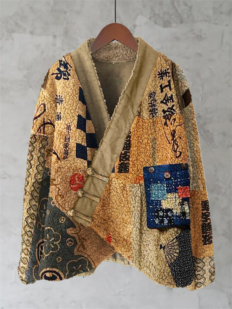 Japanese Vintage Geometric Patchwork Pattern Women's Kimono
