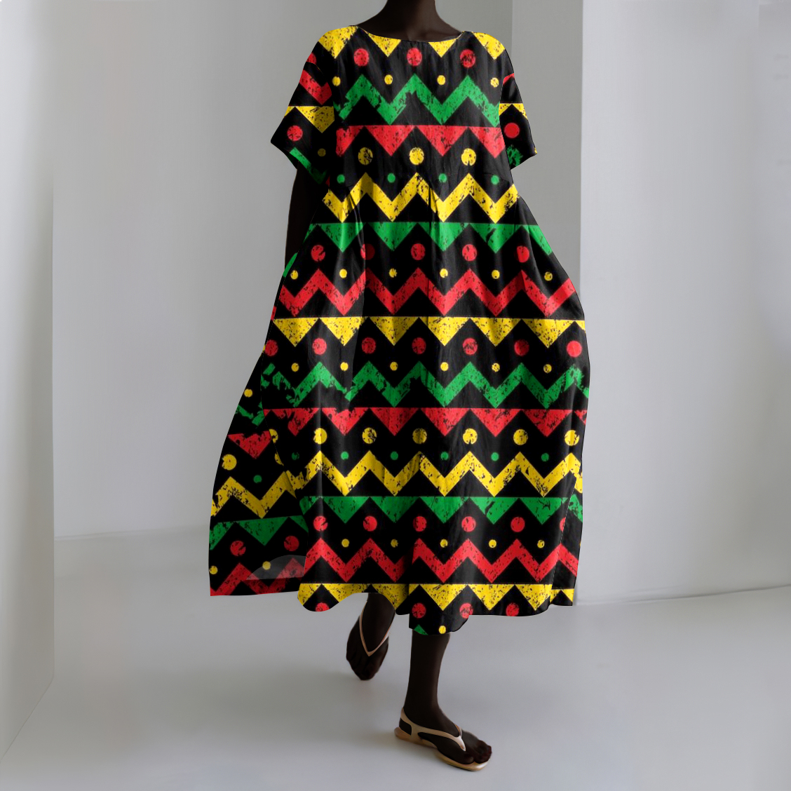 Juneteenth Geometric Art Print Short Sleeve Midi Dress
