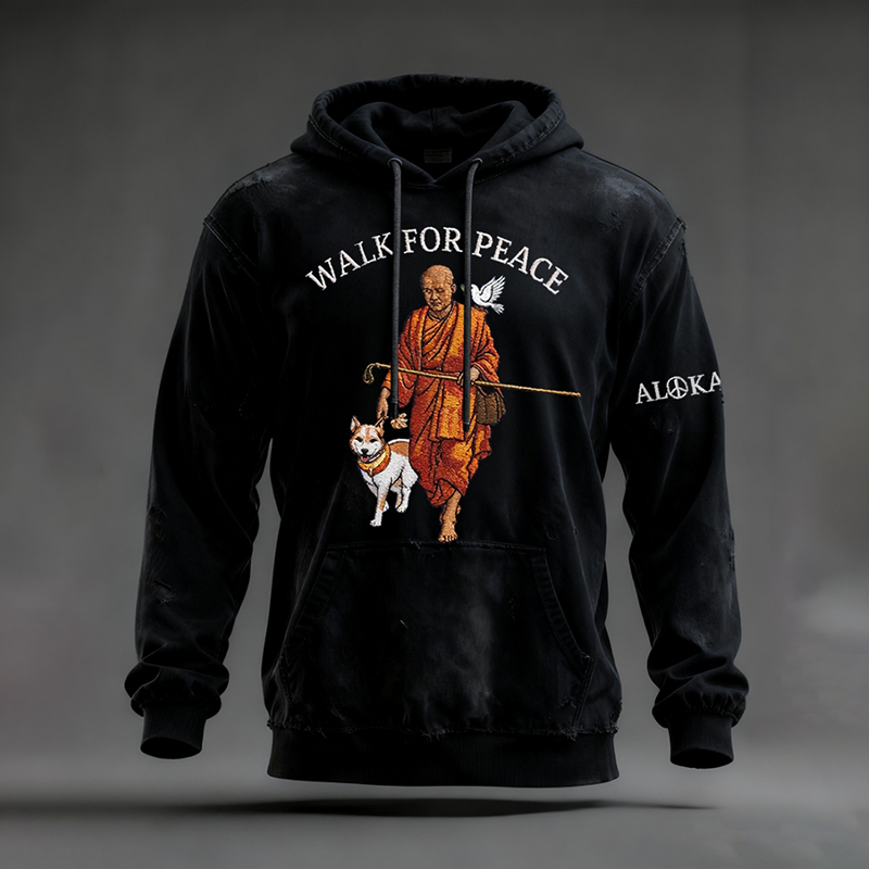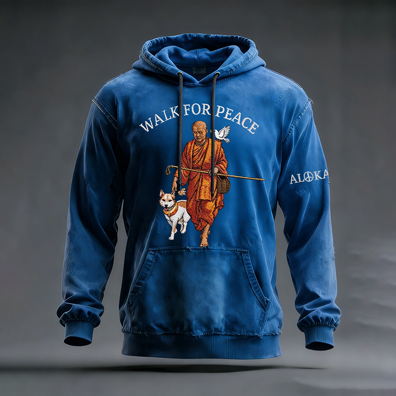 Men's Retro Walk For Peace Monks With Aloka Dog Print Casual Hoodie