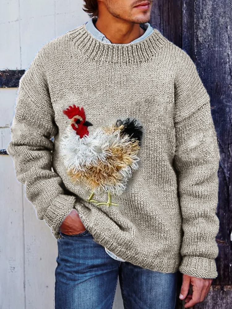 Men's Vintage Chicken Fringe Embroidered Cozy Knit Sweater