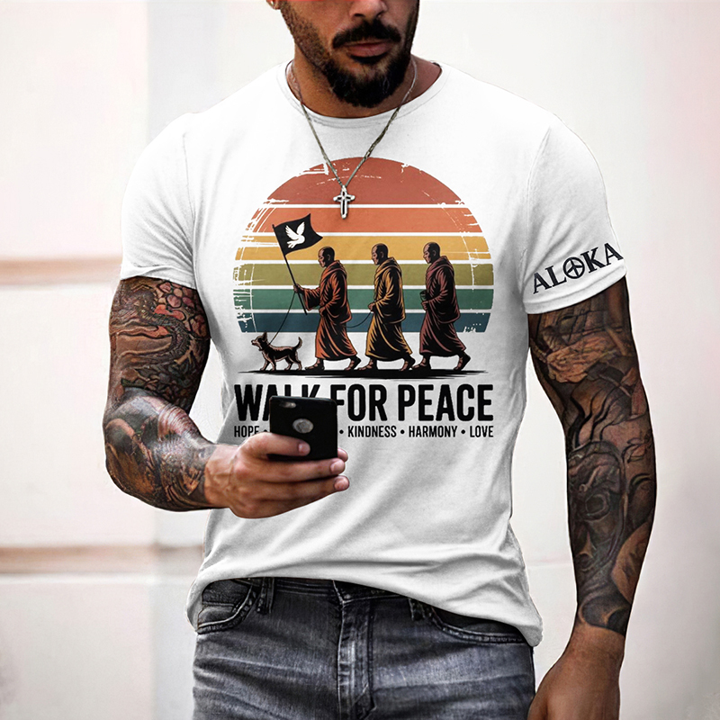 Men's Walk For Peace Monks With Aloka Dog Print Short Sleeve T-shirt