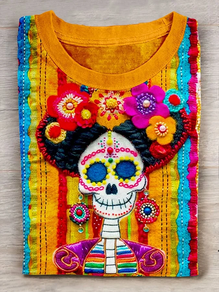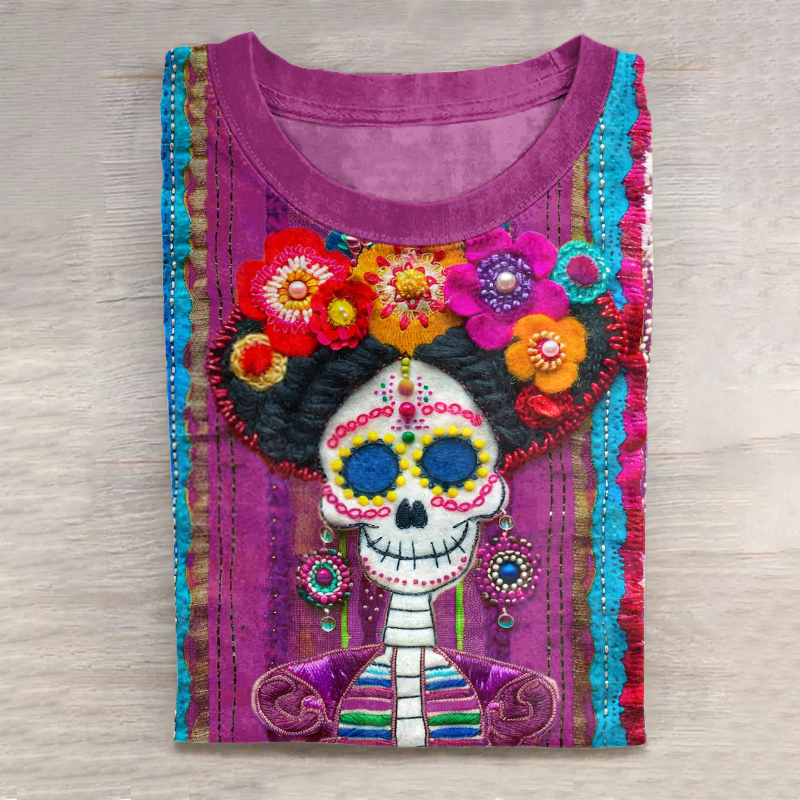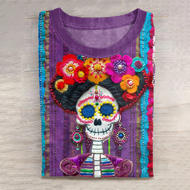 Mexican Sugar Skeleton Catrina Day Of The Dead Inspired Cotton Graphic T-Shirt