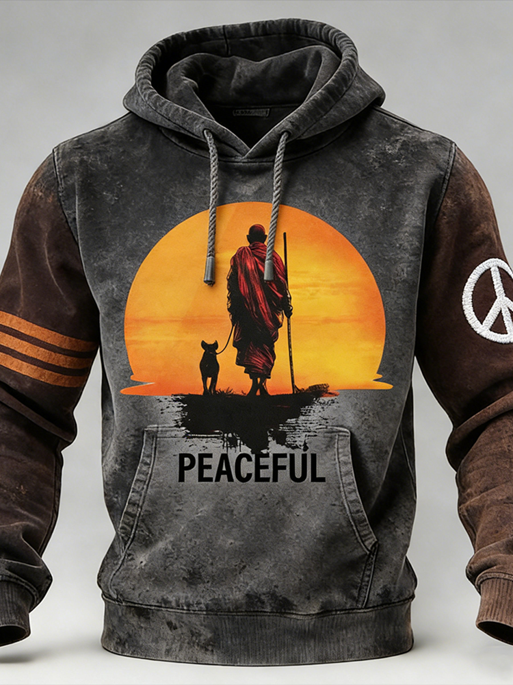 Peaceful Slogan Retro Print Hoodie