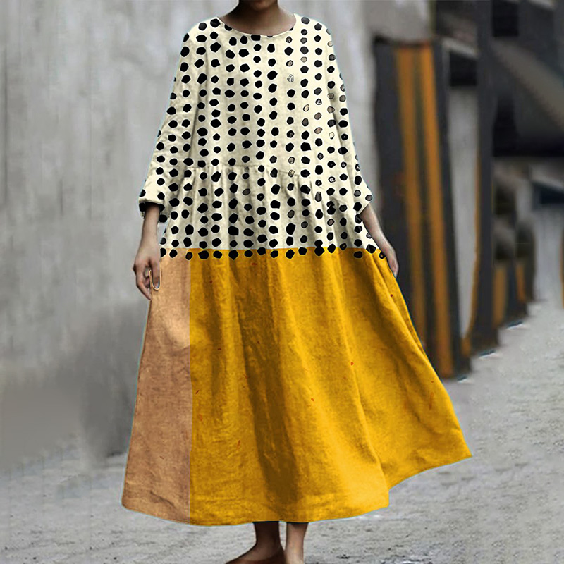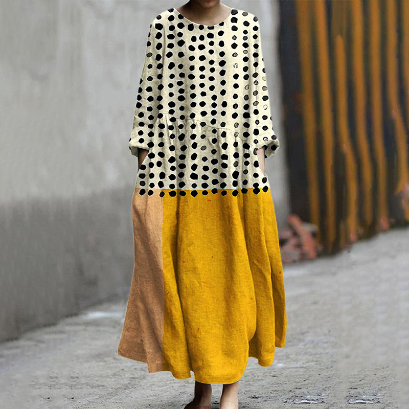 Polka Dot Print Round Neck Loose Maxi Dress