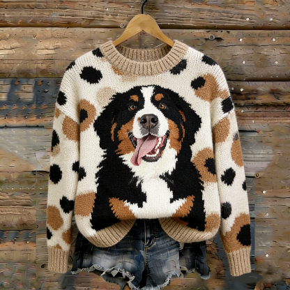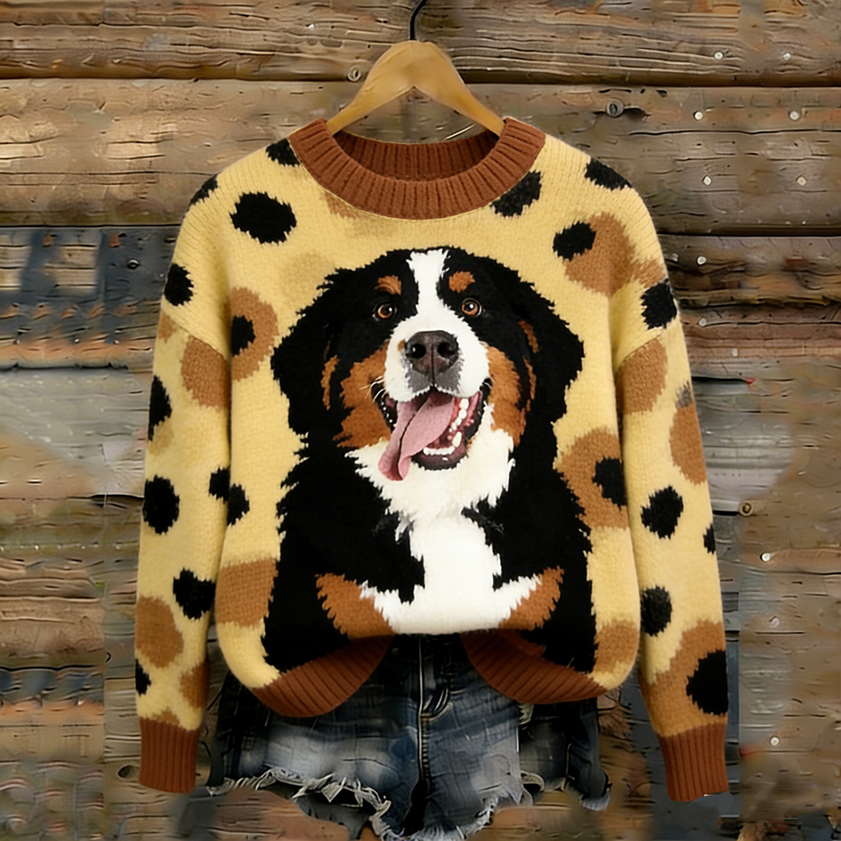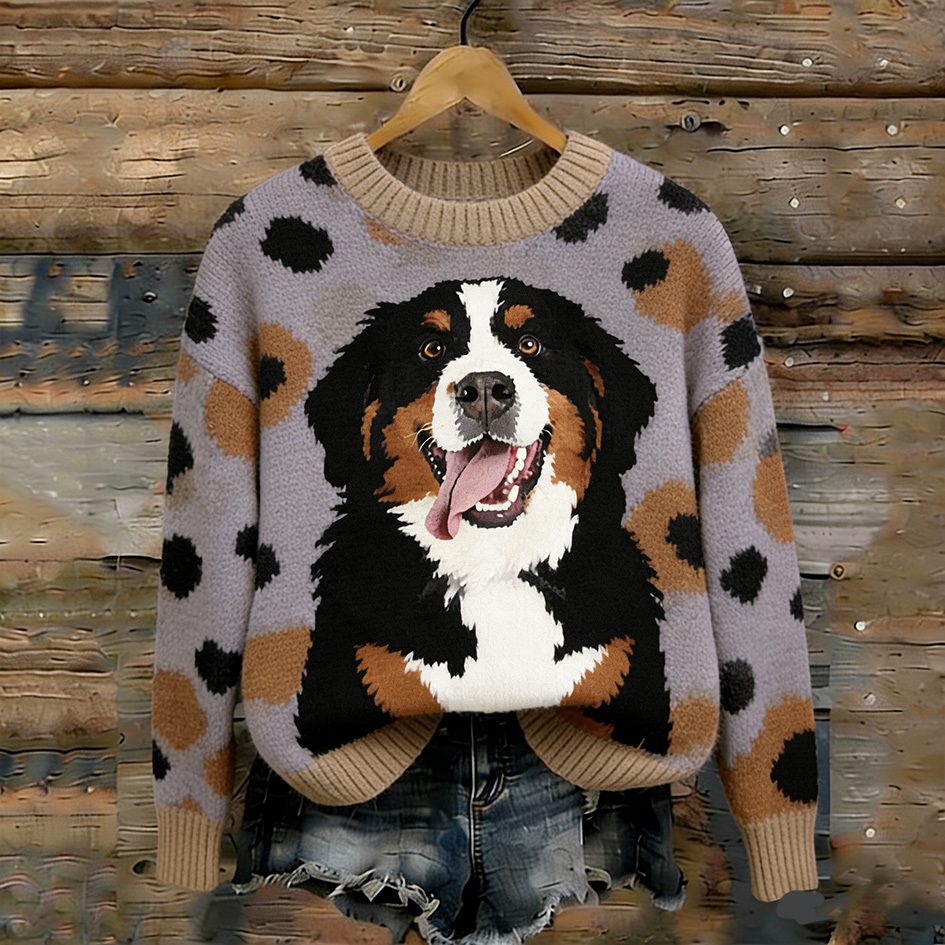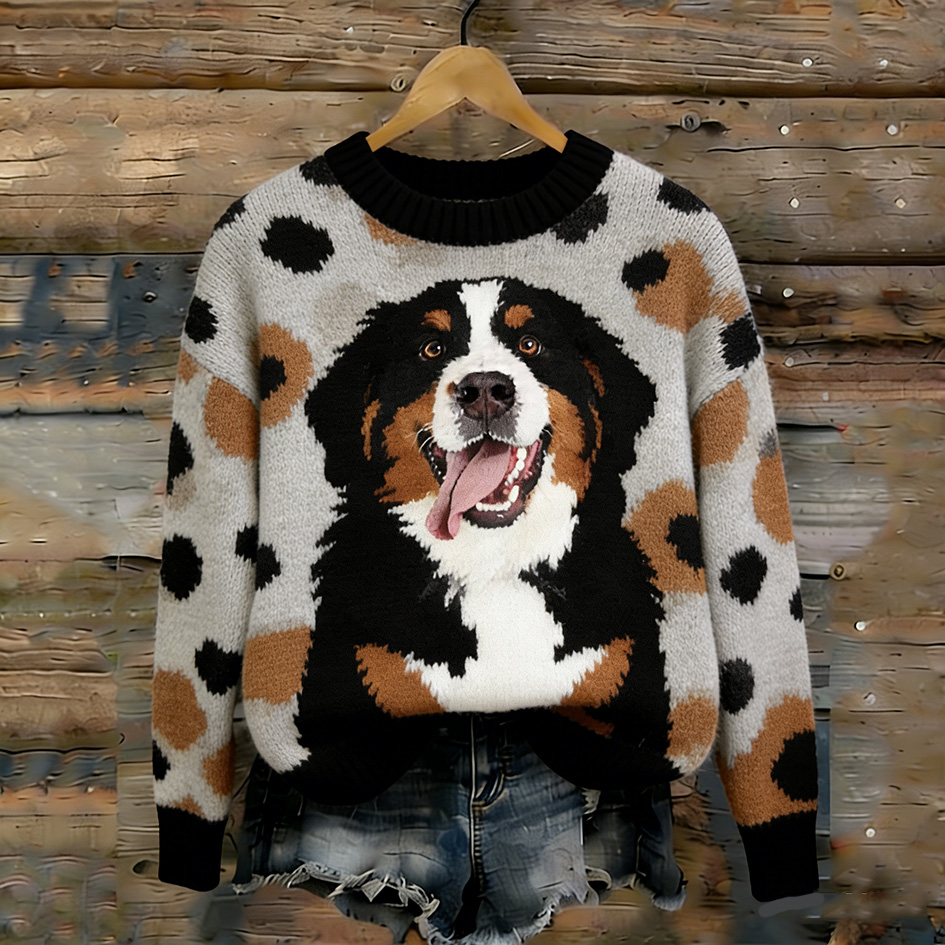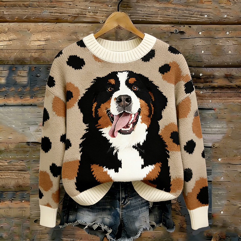 Retro Cute Puppy Pattern Round Neck Sweater