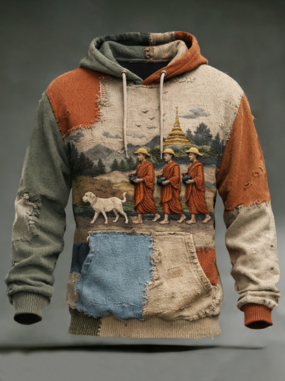 Retro Walk For Peace Monks With Aloka Dog Print Hooded Sweater
