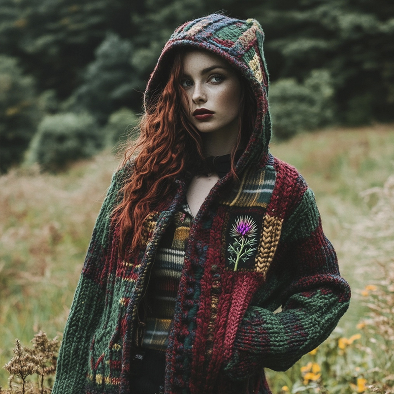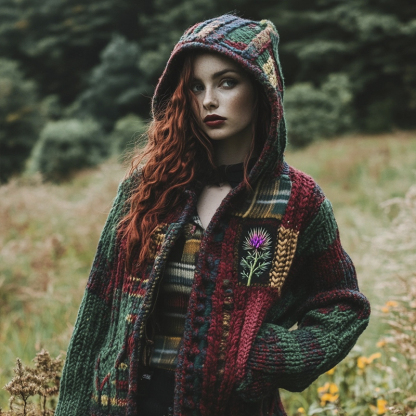 Scottish Vintage Patchwork Pattern Women's Hooded Sweater