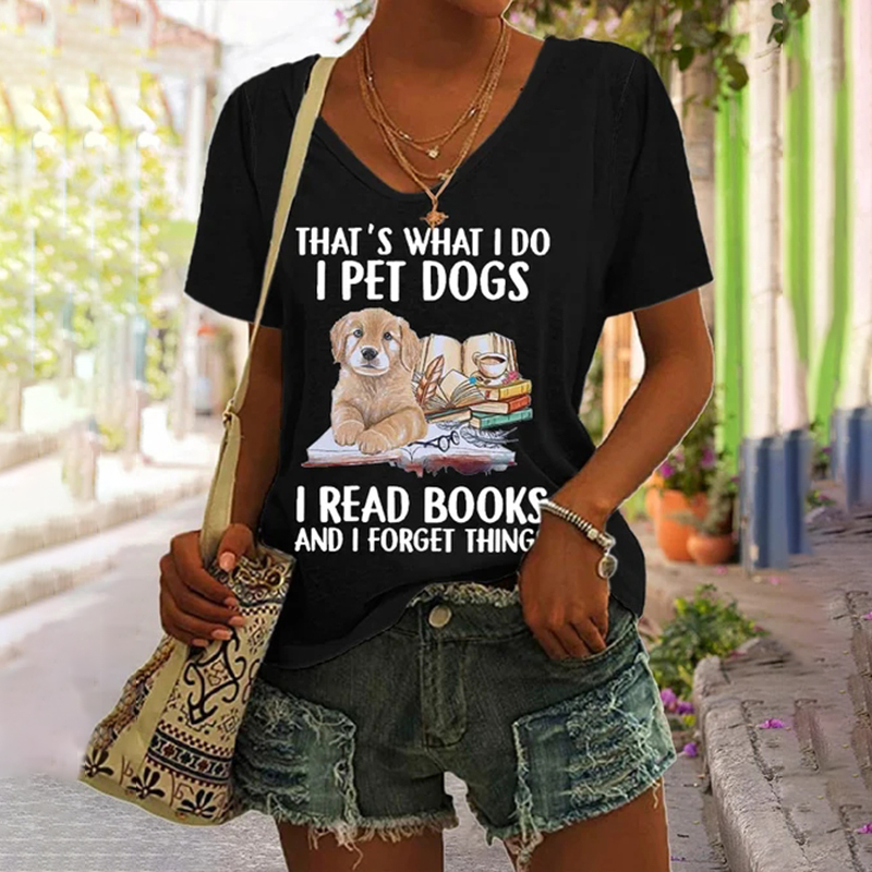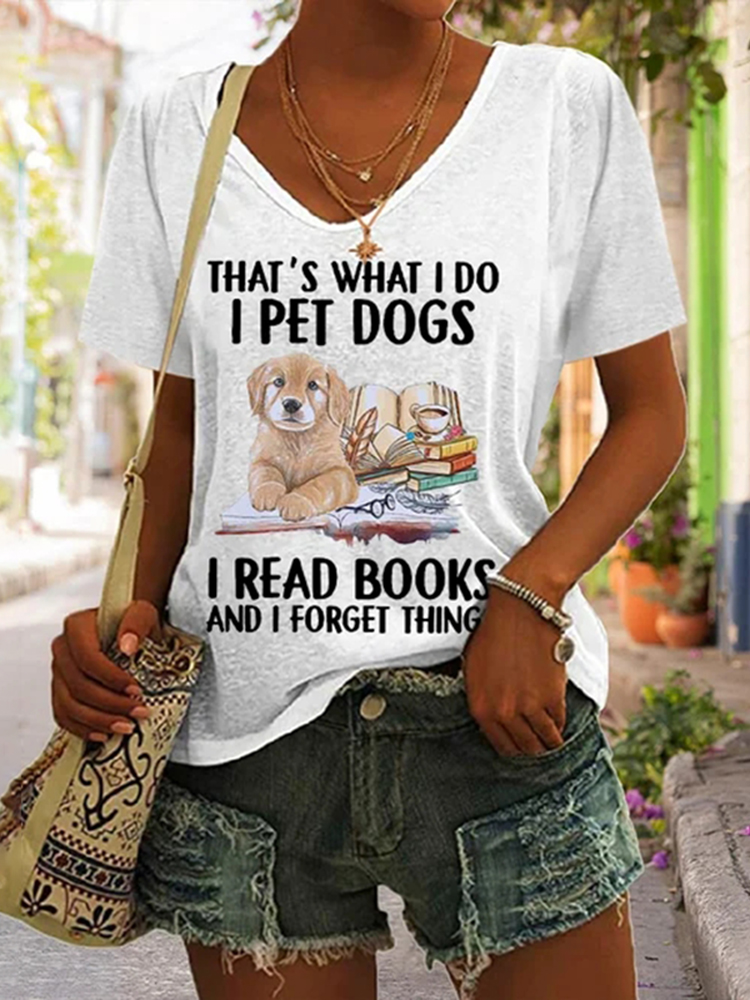 That's What I Do I Pet Dogs I Read Books And I Forget Things Print T-Shirt