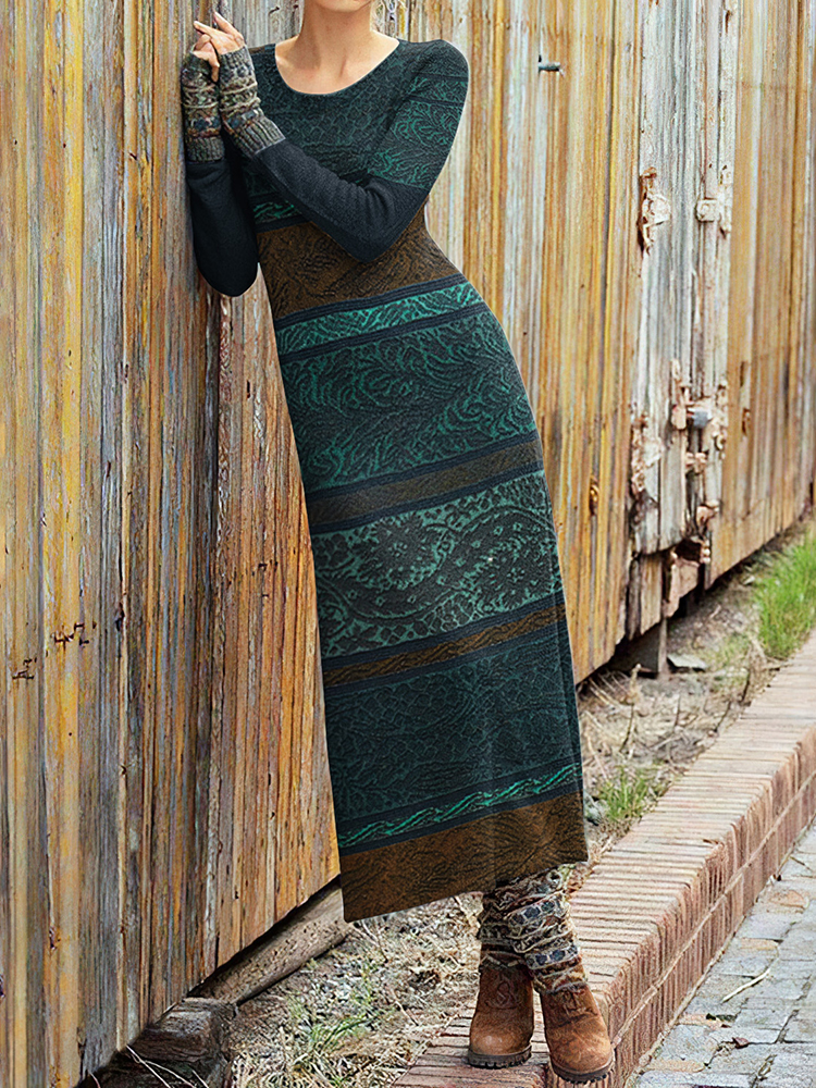 Vintage Fairman Tribal Pattern Cozy Wool Sweater Dress