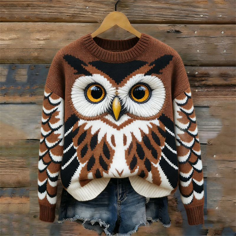 Vintage Forest Owl Inspired Cozy Knit Sweater