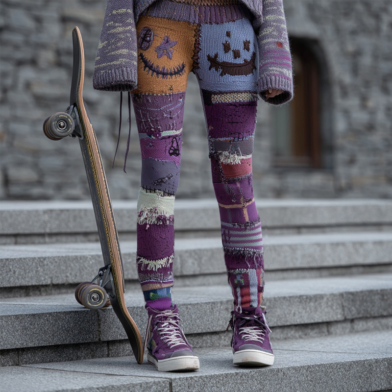 Vintage Halloween Inspired Patchwork Cozy Knitted Leggings