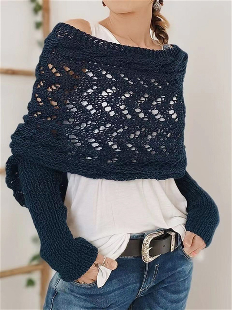 Vintage Hollow Crochet Wrap Cozy Knit Scarf Sweater