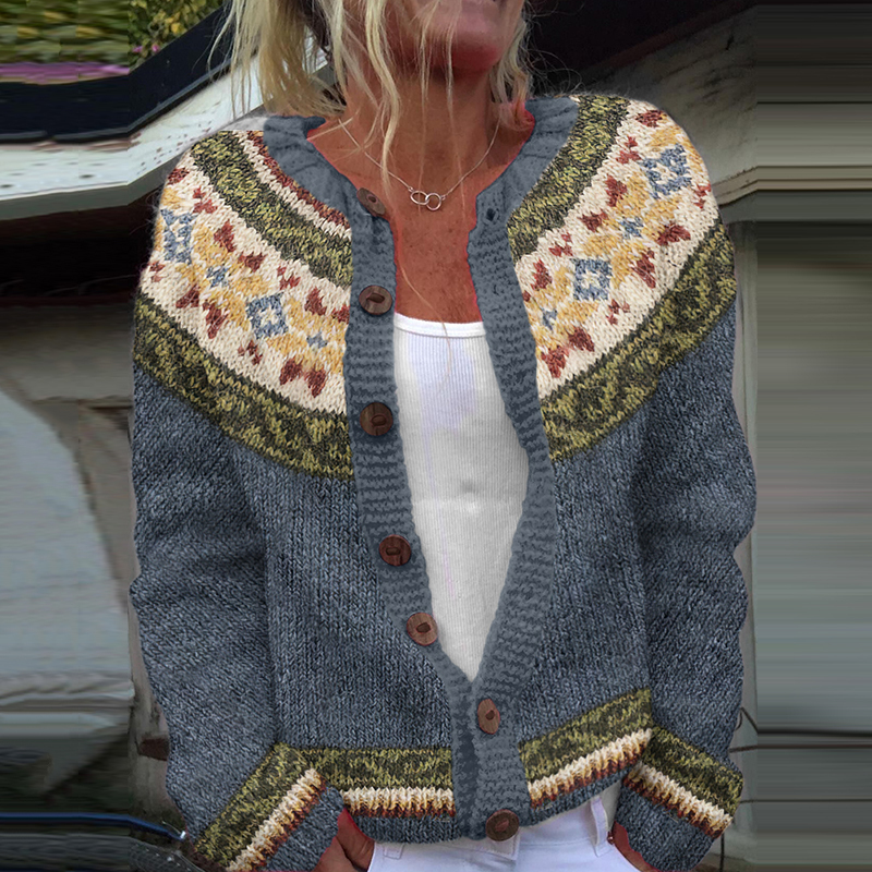 Vintage Icelandic Pattern Art Print Cozy Button Sweater