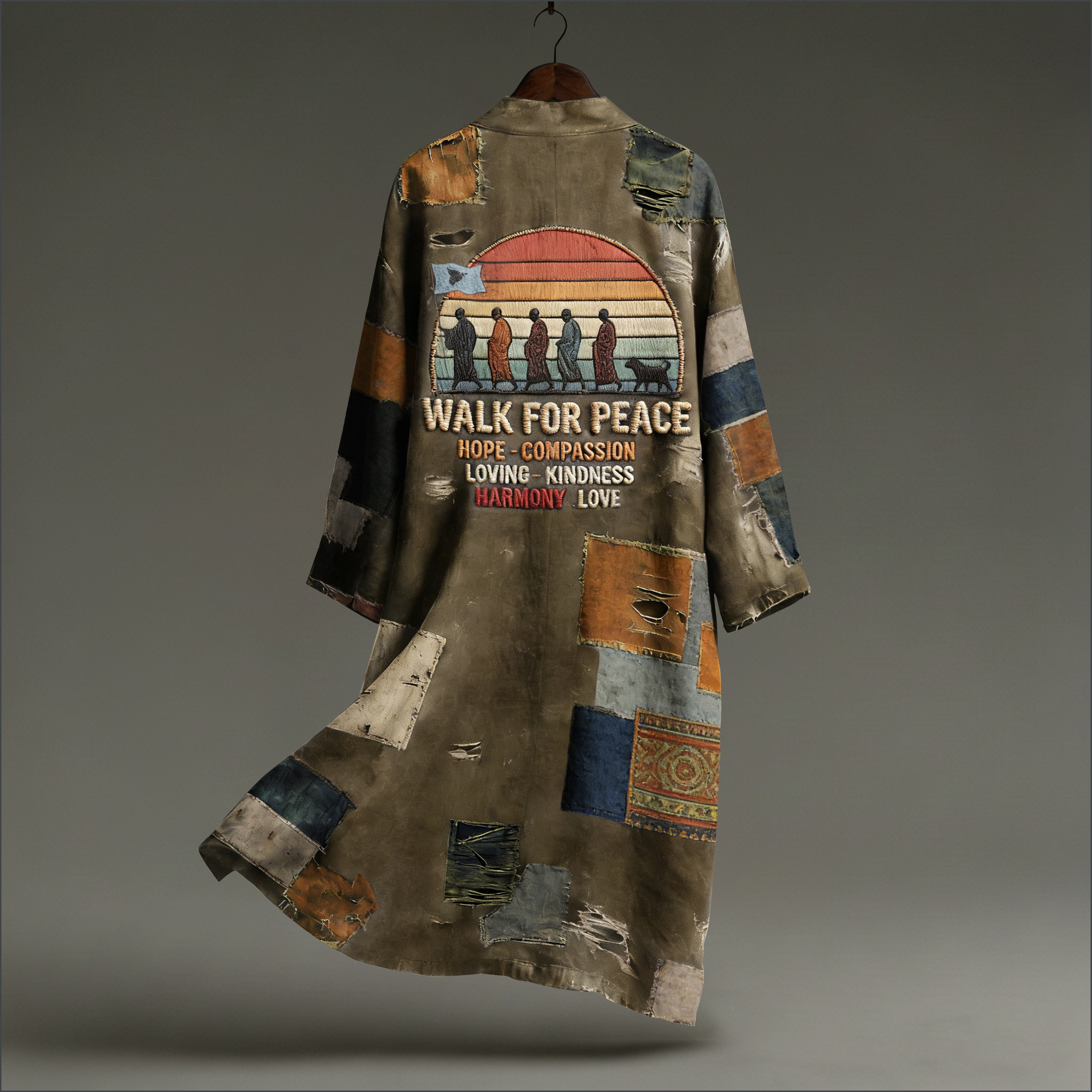 Inspired by Buddhist monks walking 2,300 miles across the U.S. to promote nonviolence and unity, every piece spreads compassion, kindness, and hope.