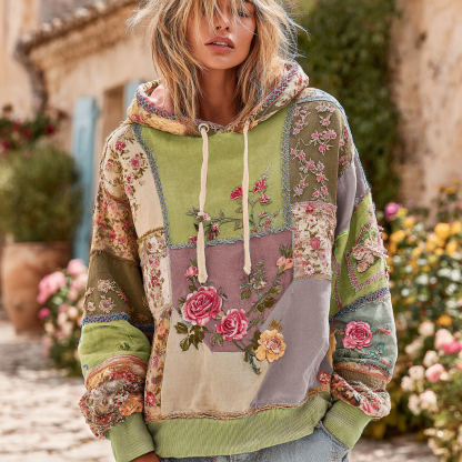 Vintage Rose Floral Patch Comfortable Warm Hoodie