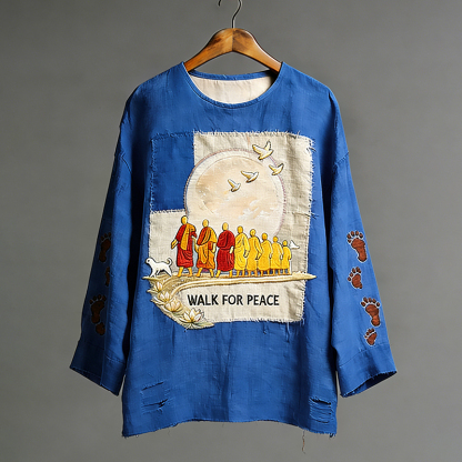 Walk For Peace Aloka Dog Art Cotton Linen Shirt