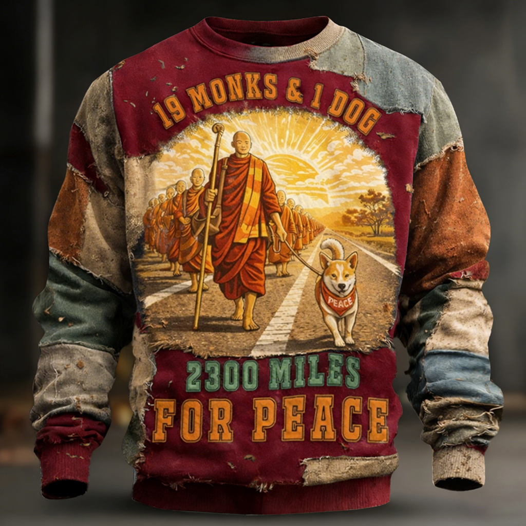 Inspired by Buddhist monks walking 2,300 miles across the U.S. to promote nonviolence and unity, every piece spreads compassion, kindness, and hope.