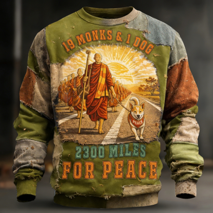 Walk For Peace Artistic Patchwork Print Sweatshirt