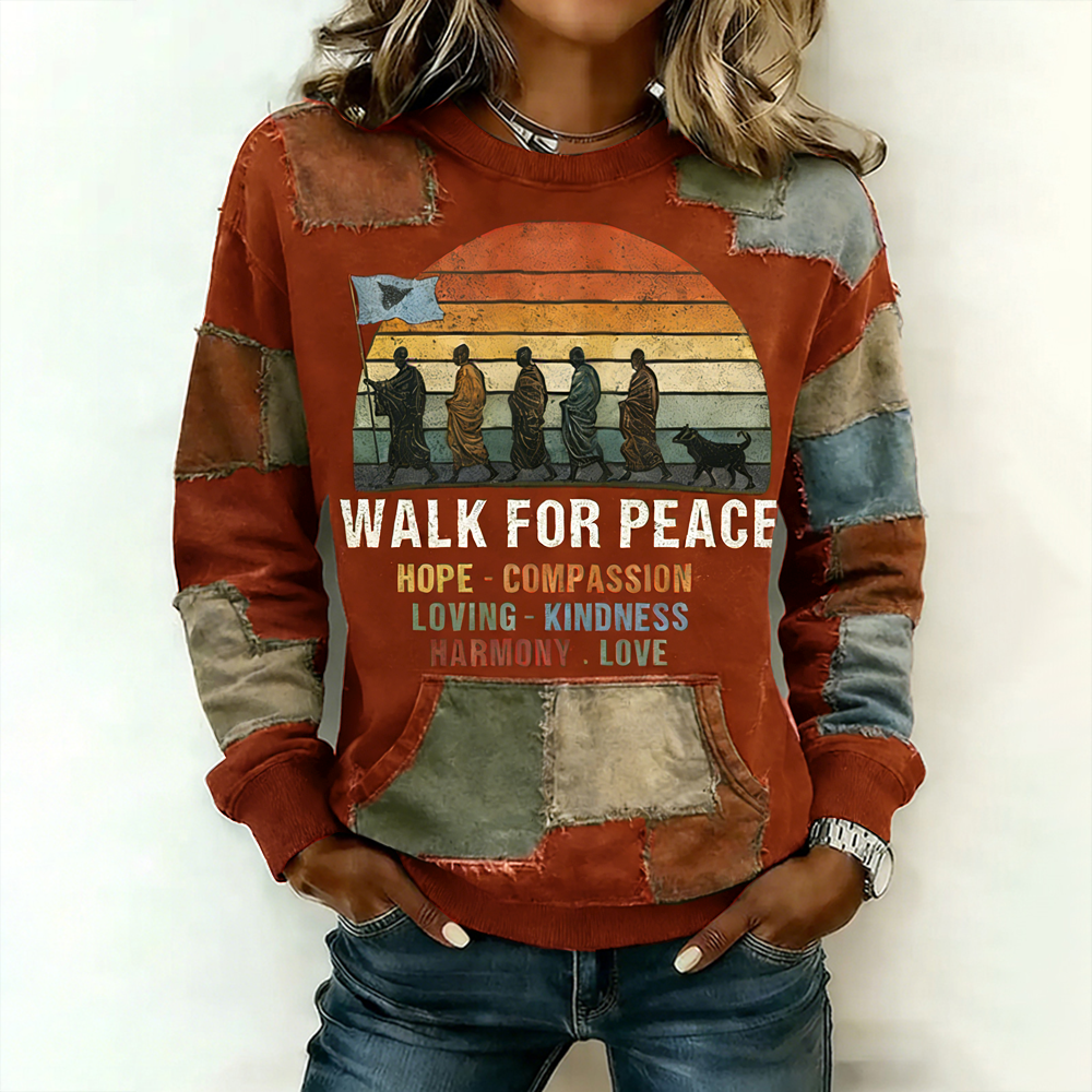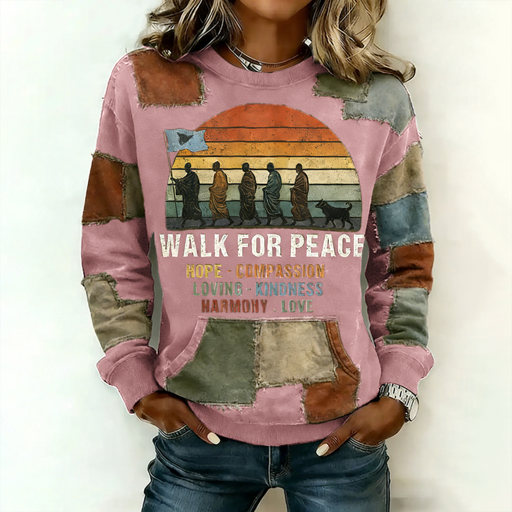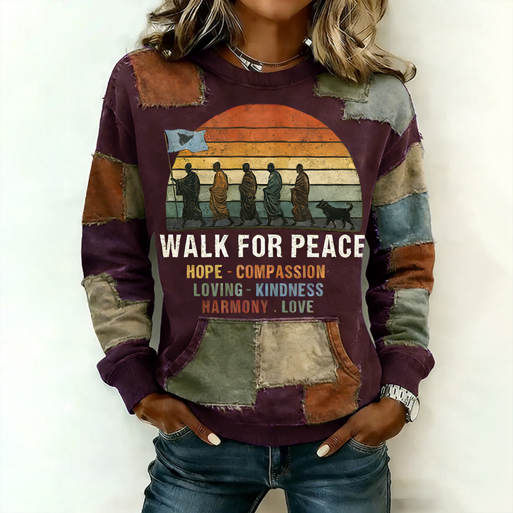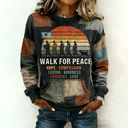 Walk For Peace Artistic Patchwork Print Women's Sweatshirt