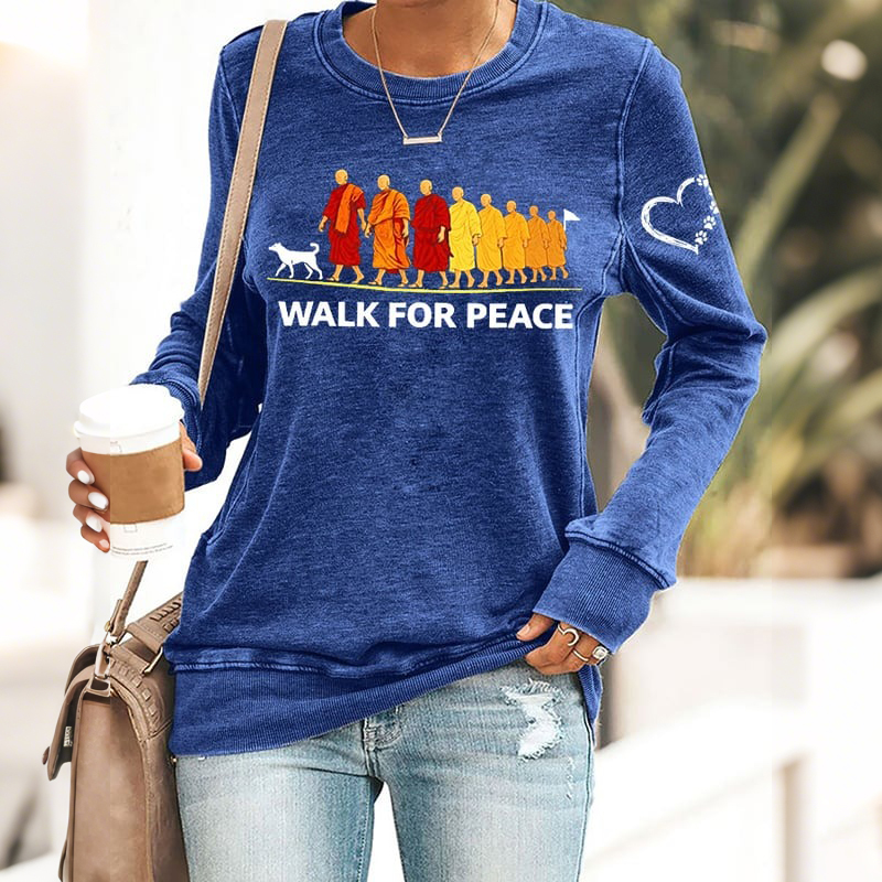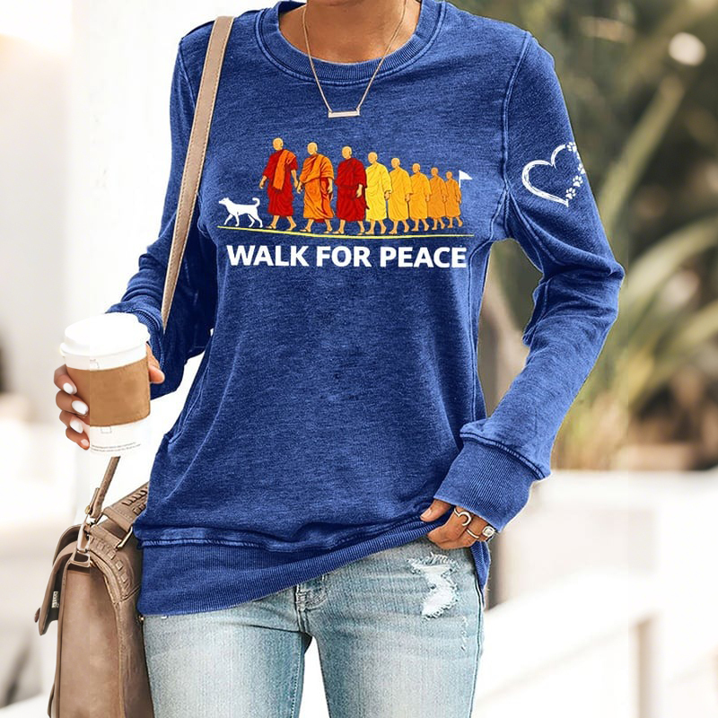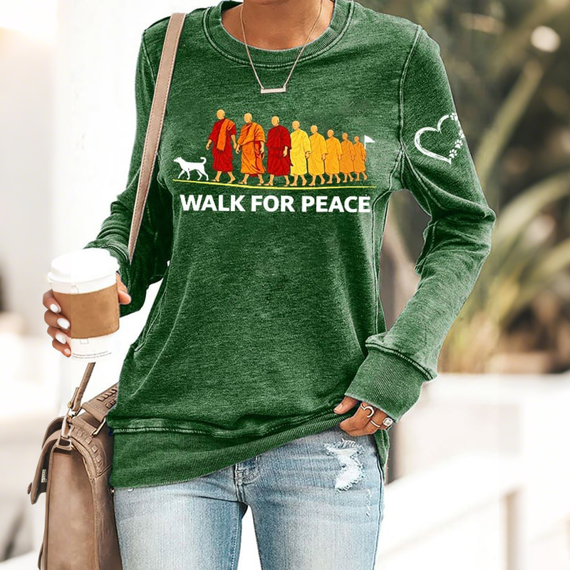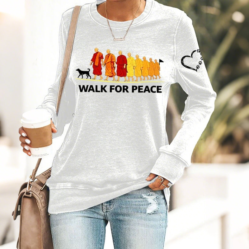 Walk For Peace Embroidered Casual Sweatshirt