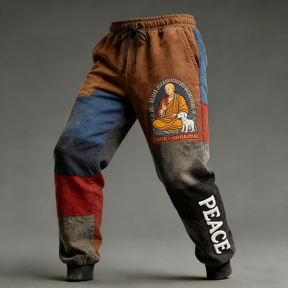 Walk For Peace Inspired Retro Color Block Casual Long Pants