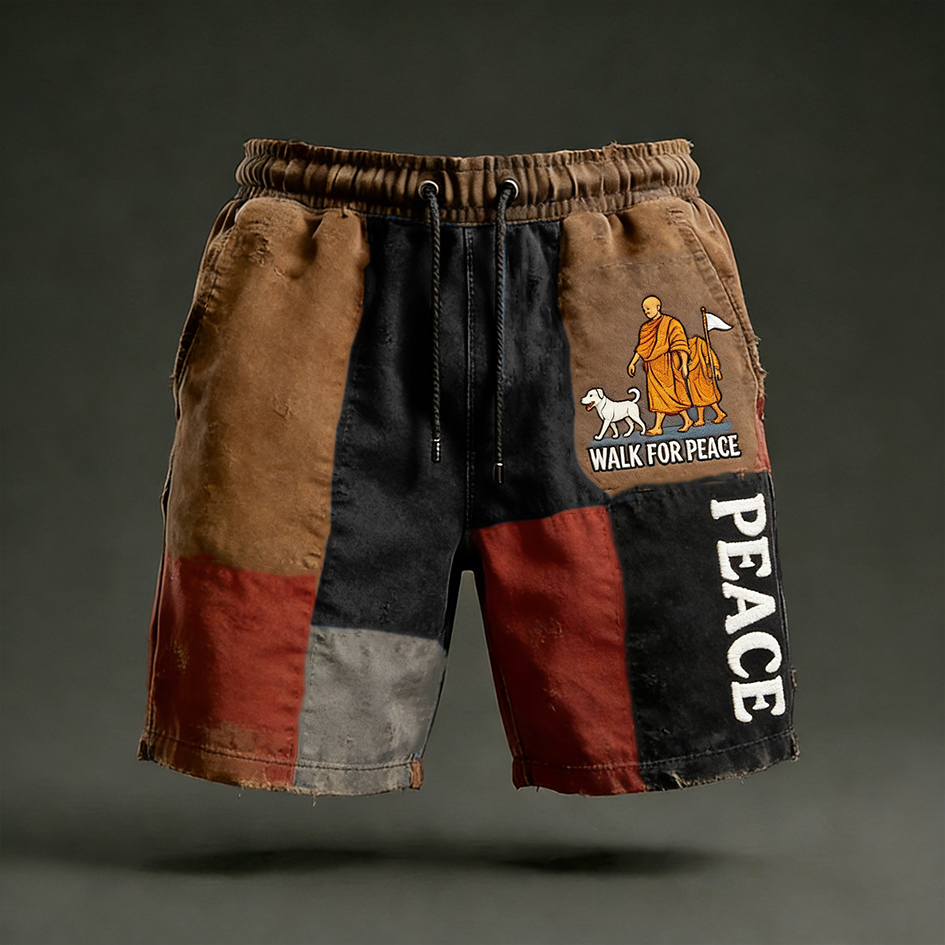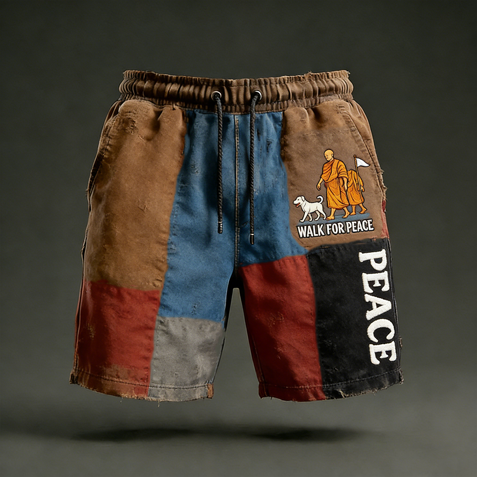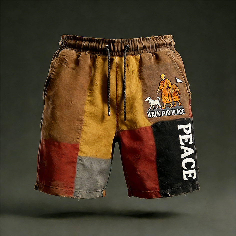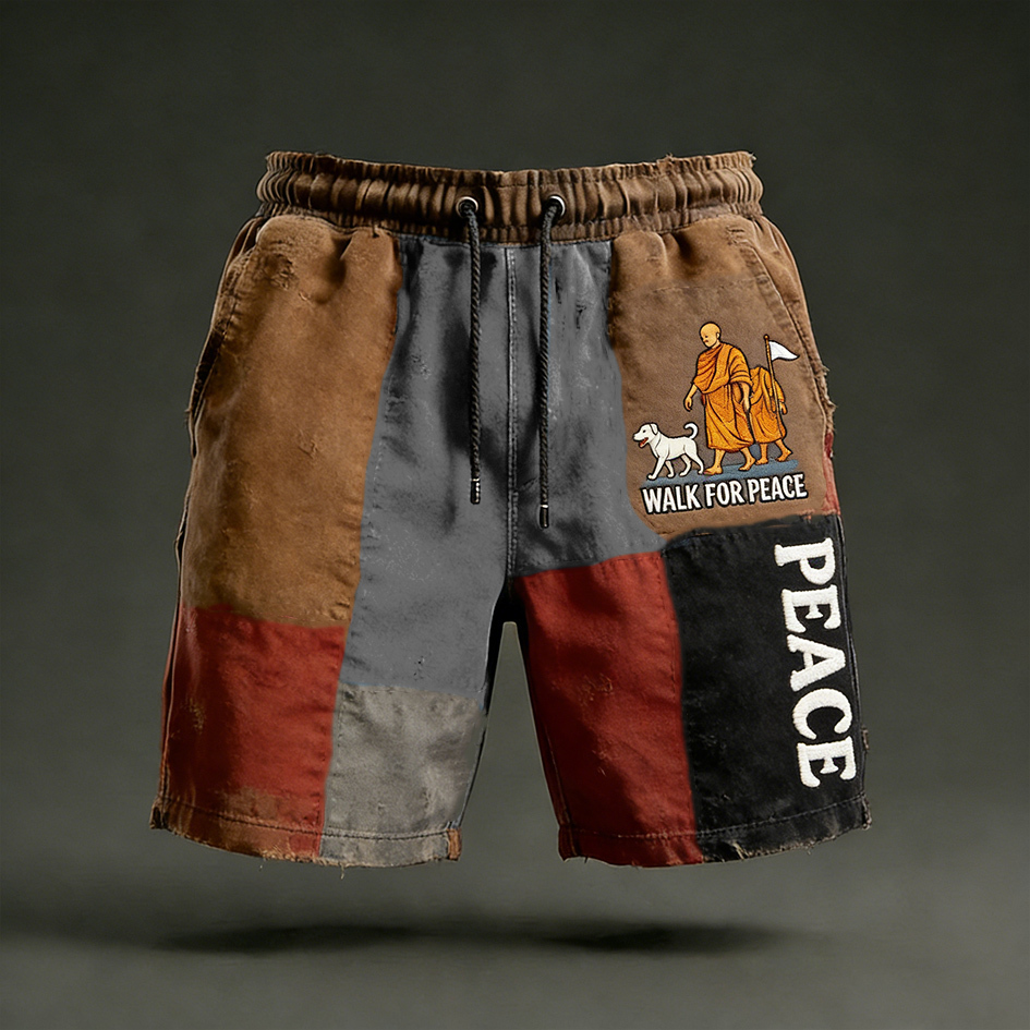 Walk For Peace Inspired Retro Colour Block Casual Shorts