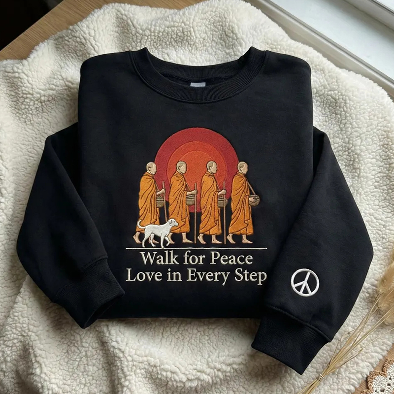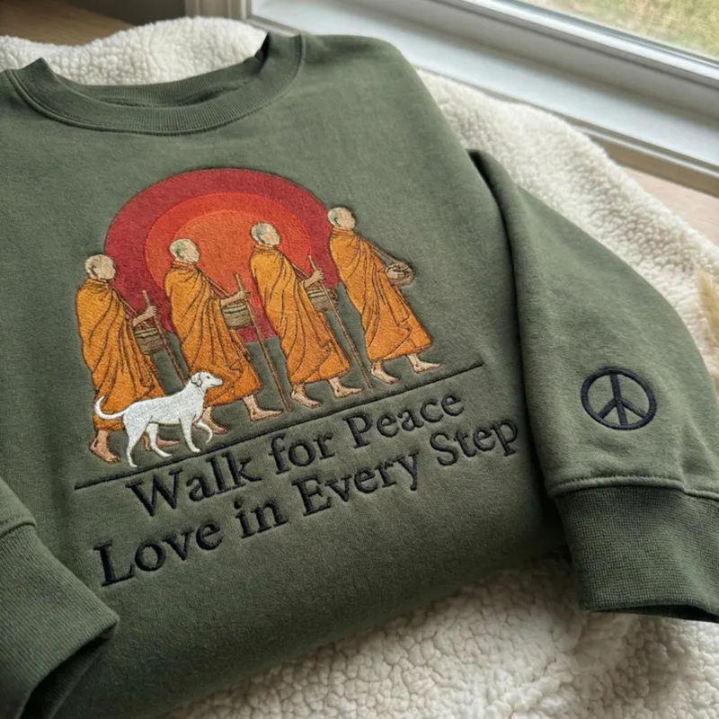 Inspired by Buddhist monks walking 2,300 miles across the U.S. to promote nonviolence and unity, every piece spreads compassion, kindness, and hope.