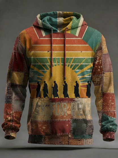 Walk For Peace Patchwork Casual Hoodie