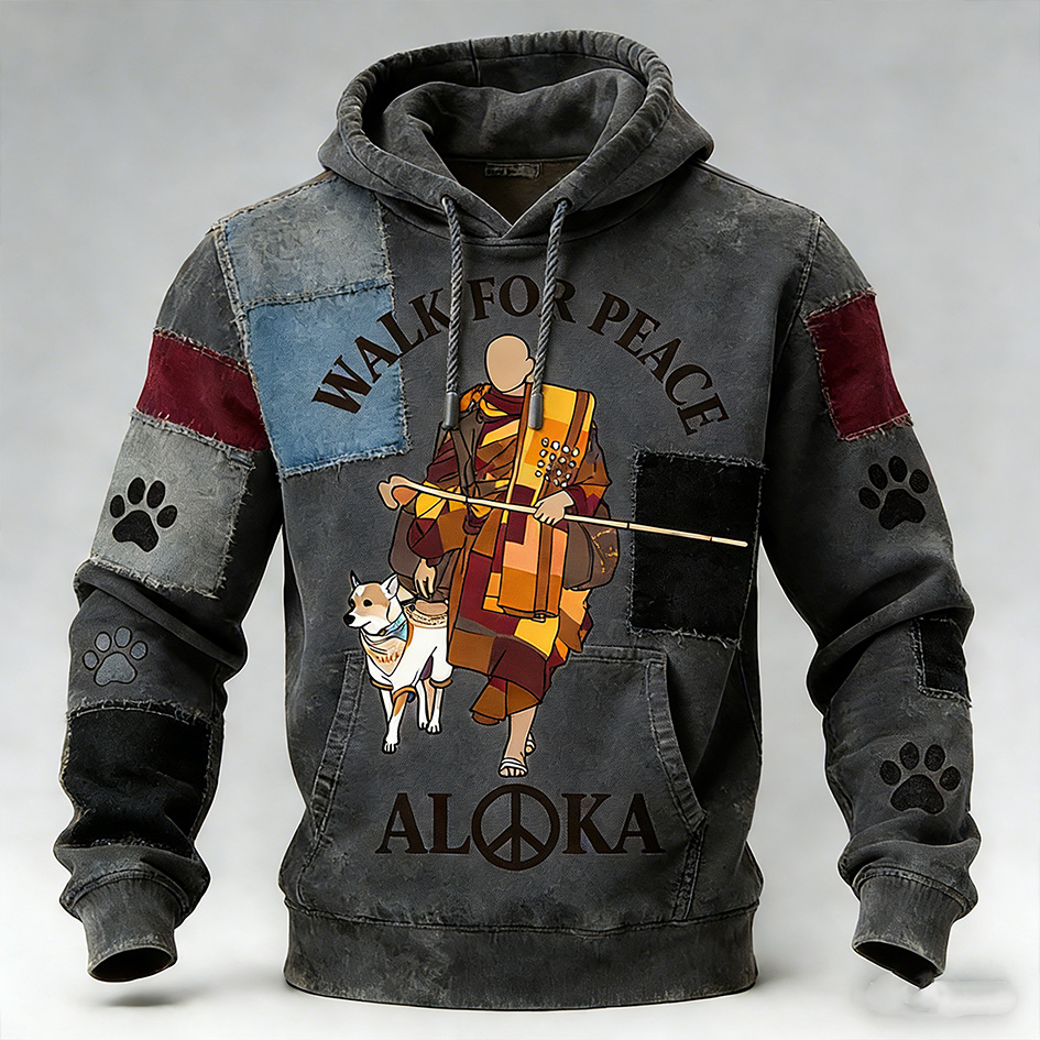 Walk For Peace Slogan Retro Print Hoodie