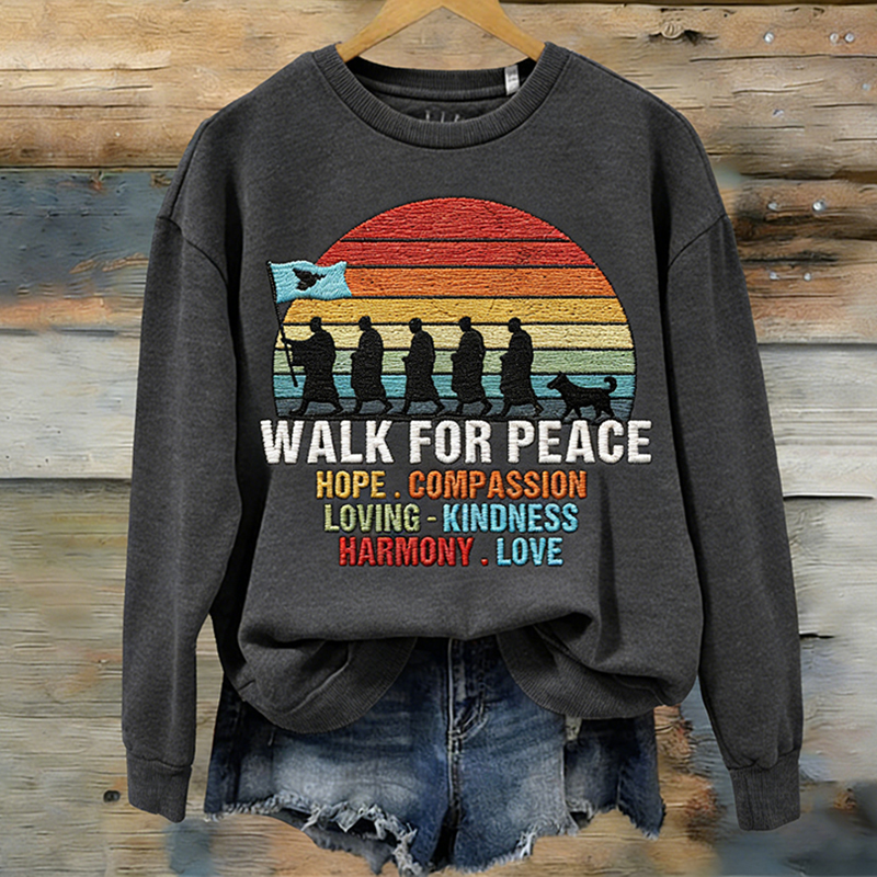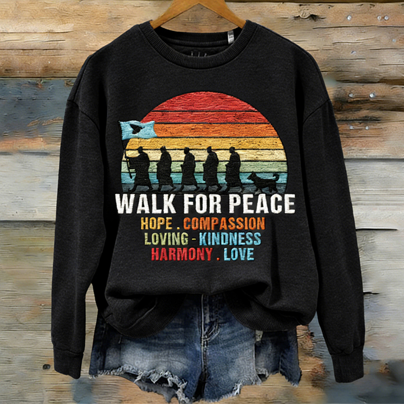Inspired by Buddhist monks walking 2,300 miles across the U.S. to promote nonviolence and unity, every piece spreads compassion, kindness, and hope.