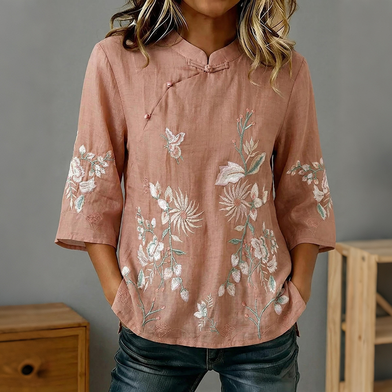 Women's Cotton And Linen Chinese Style Three-quarter Sleeve Top