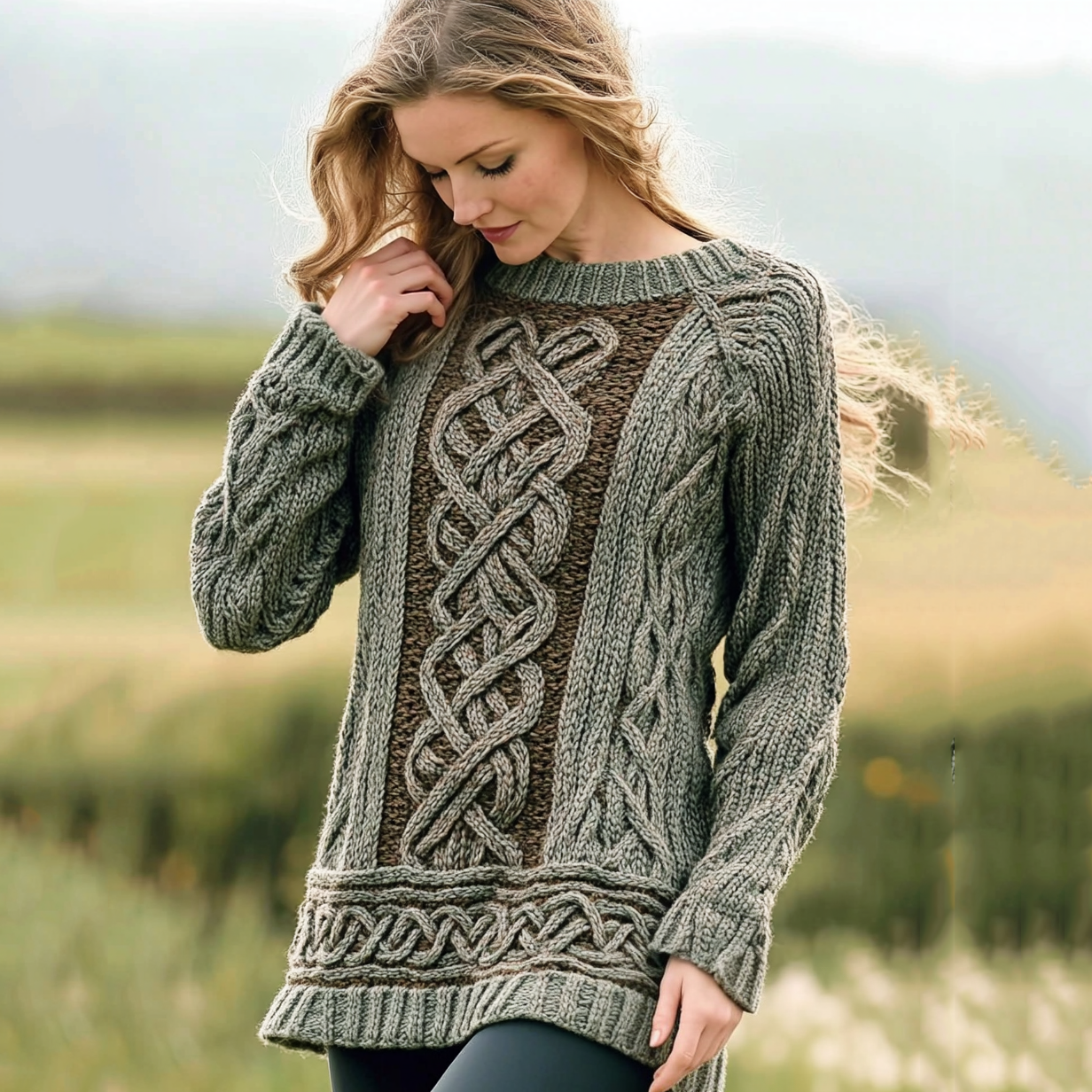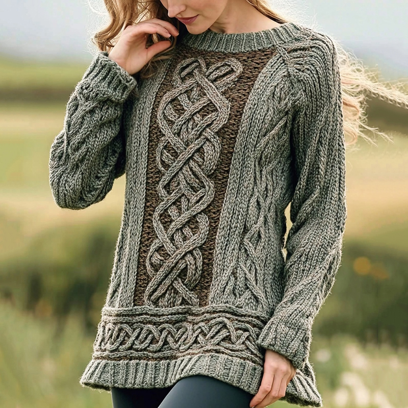 Women's Irish Celtic Knot Jacquard Crew Neck Sweater
