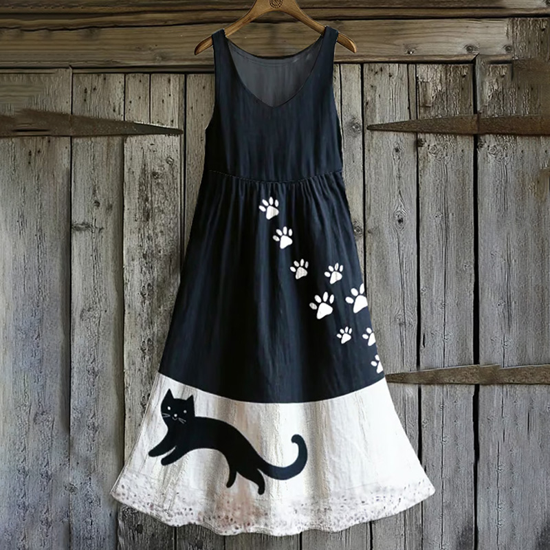 Women's Japanese Art Embroidery Cat Paw Print Dress