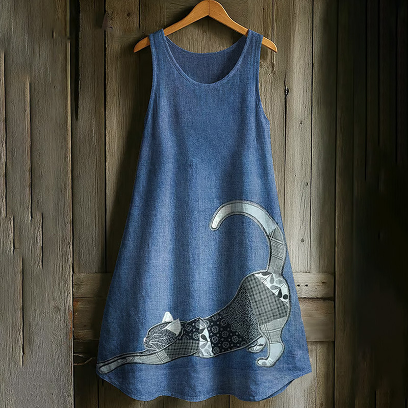 Women's Japanese Art Embroidery Cat Print Dress