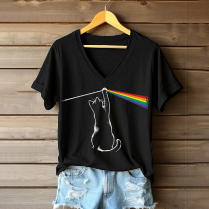 Women's Rainbow Cat Printed Short-sleeved T-shirt