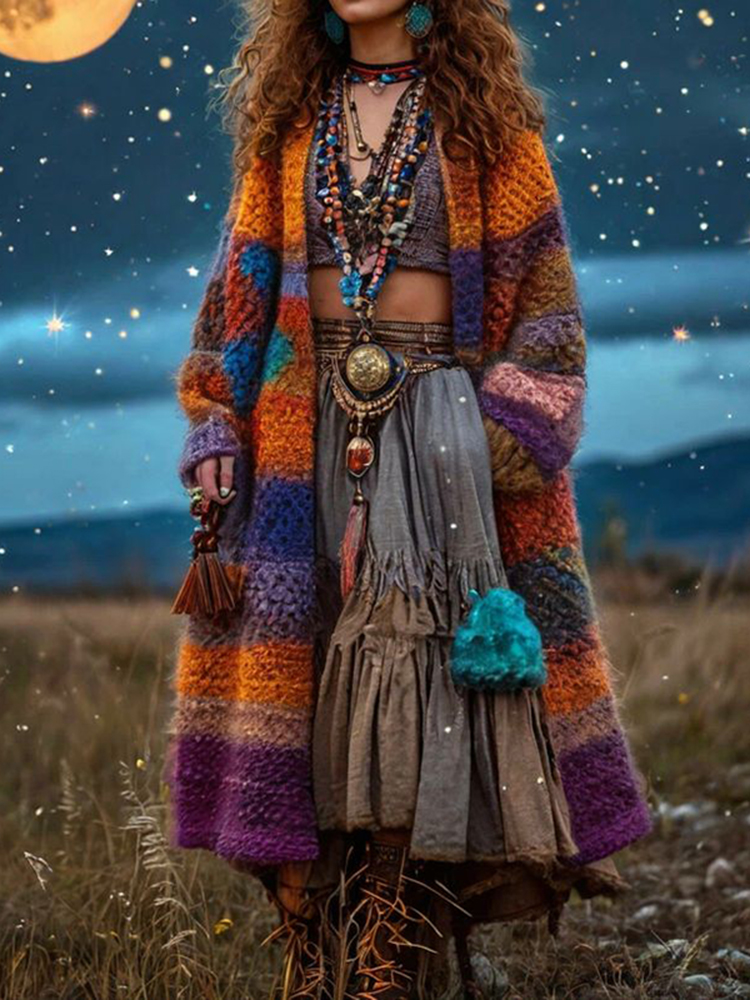 Women's Rainbow Colorful Patchwork Pattern Sweater Cardigan
