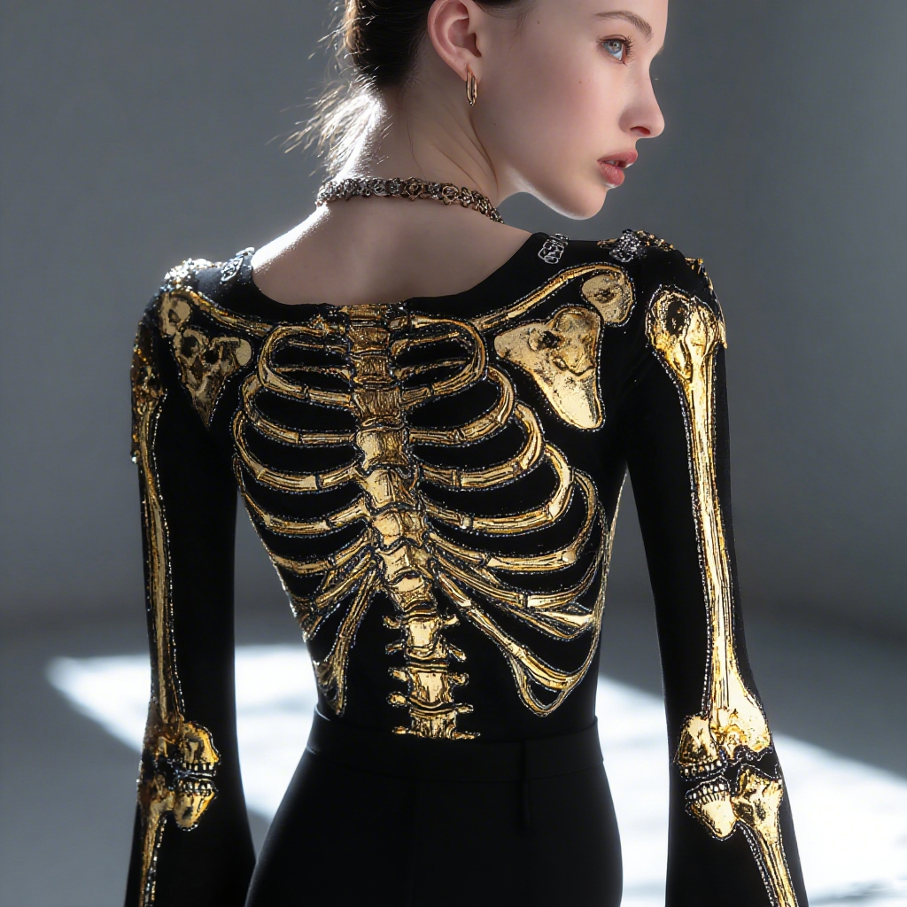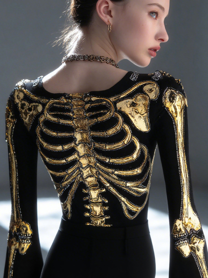 Women's Retro Human Skull Art Casual V-neck T-shirt