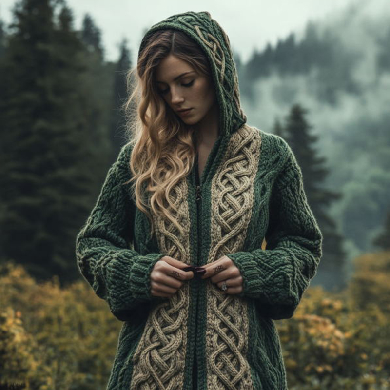Women's Vintage Green Celtic Knot Knit Hoodie Cardigan