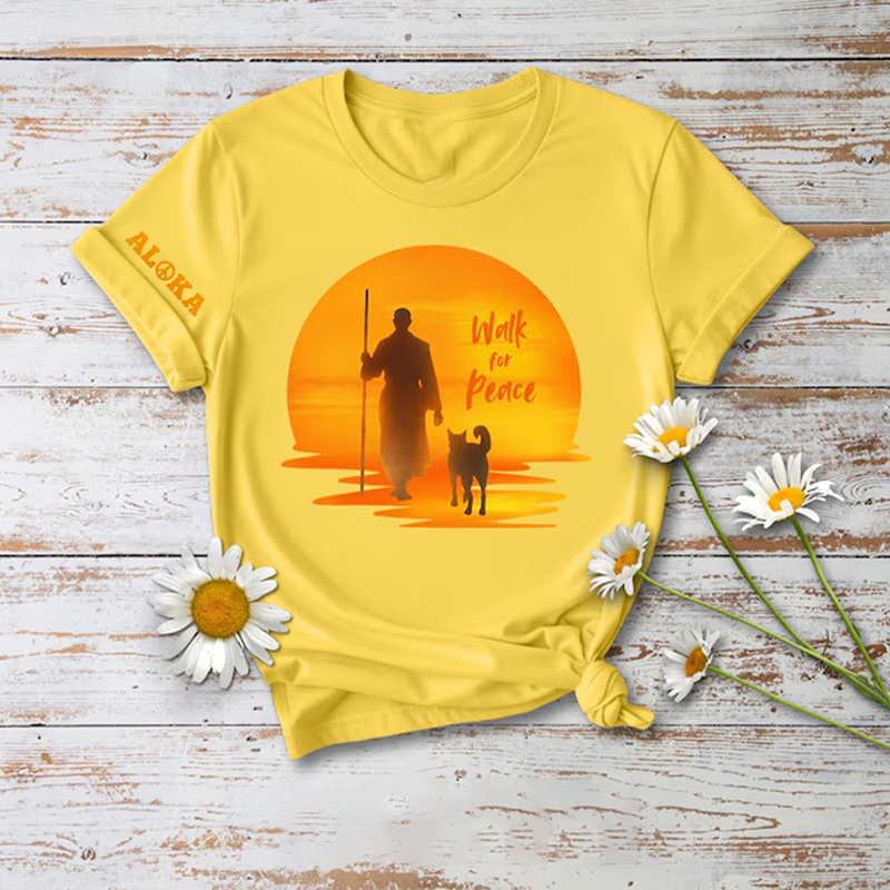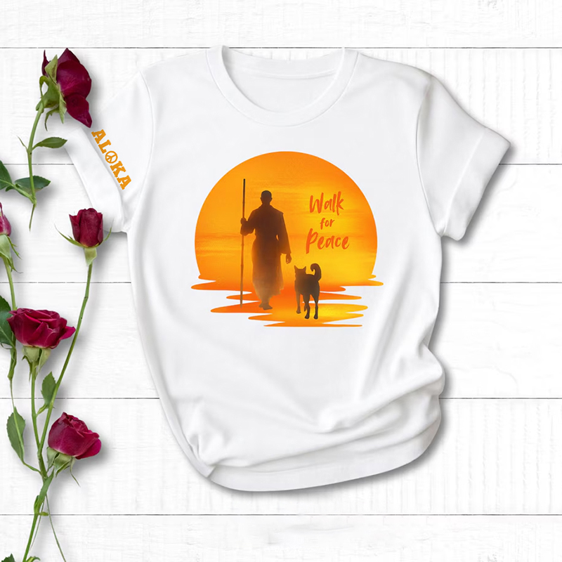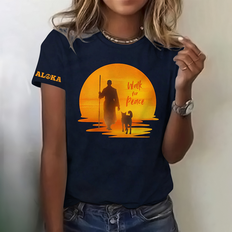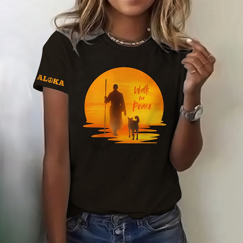 Women's Walk For Peace Monk And Faithful Dog Print T-shirt