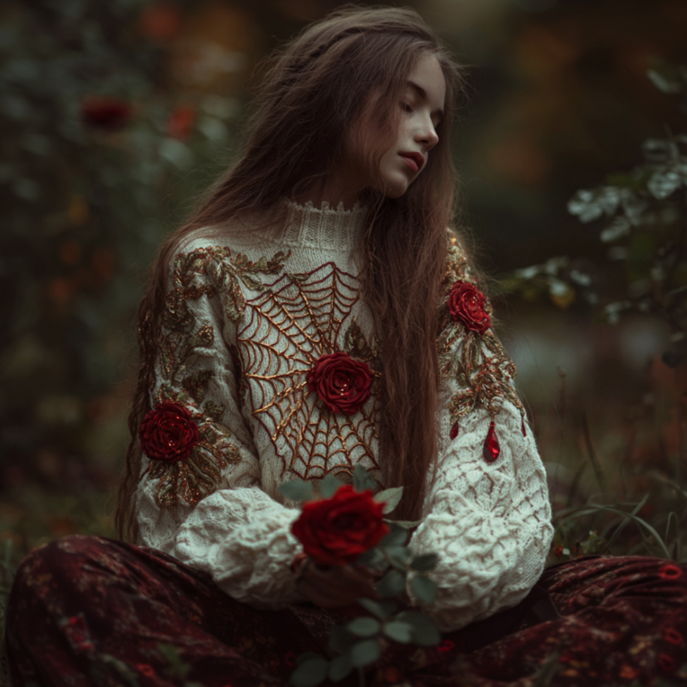Women Halloween Spider Silk Roses Make Old Round Neck Sweaters